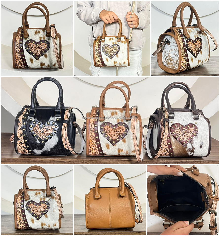 กระเป๋าถือหนังวัวแท้ทำมือแบบใหม่ สไตล์ตะวันตก ประดับหัวใจแบบมีปุ่ม พร้อมสายสะพายถอดได้สำหรับผู้หญิง