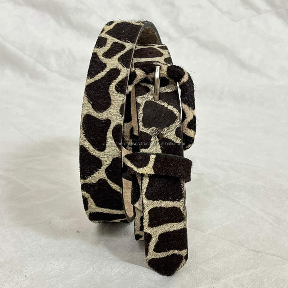 เข็มขัดผู้หญิงตะวันตกทำผมพิมพ์ลายสัตว์ใหม่งานแฮนด์เมด100% หนังแท้สไตล์ Boho ขนสัตว์เข็มขัดหัวเข็มขัดสำหรับกางเกงยีนส์