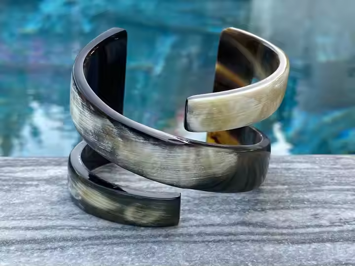 กำไลข้อมือเขาควายทำด้วยมือแบบใหม่เครื่องประดับสร้อยข้อมือสีธรรมชาติพร้อมกำไลลูกปัดสไตล์โดยงานฝีมือรูปพระจันทร์เสี้ยว