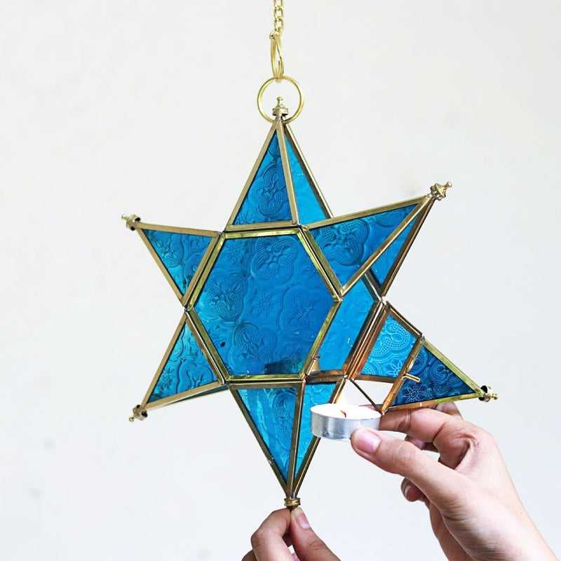 ใหม่ทำด้วยมือตกแต่งสีฟ้าดาวแขวนโคมไฟที่มีคุณภาพที่ดีที่สุด