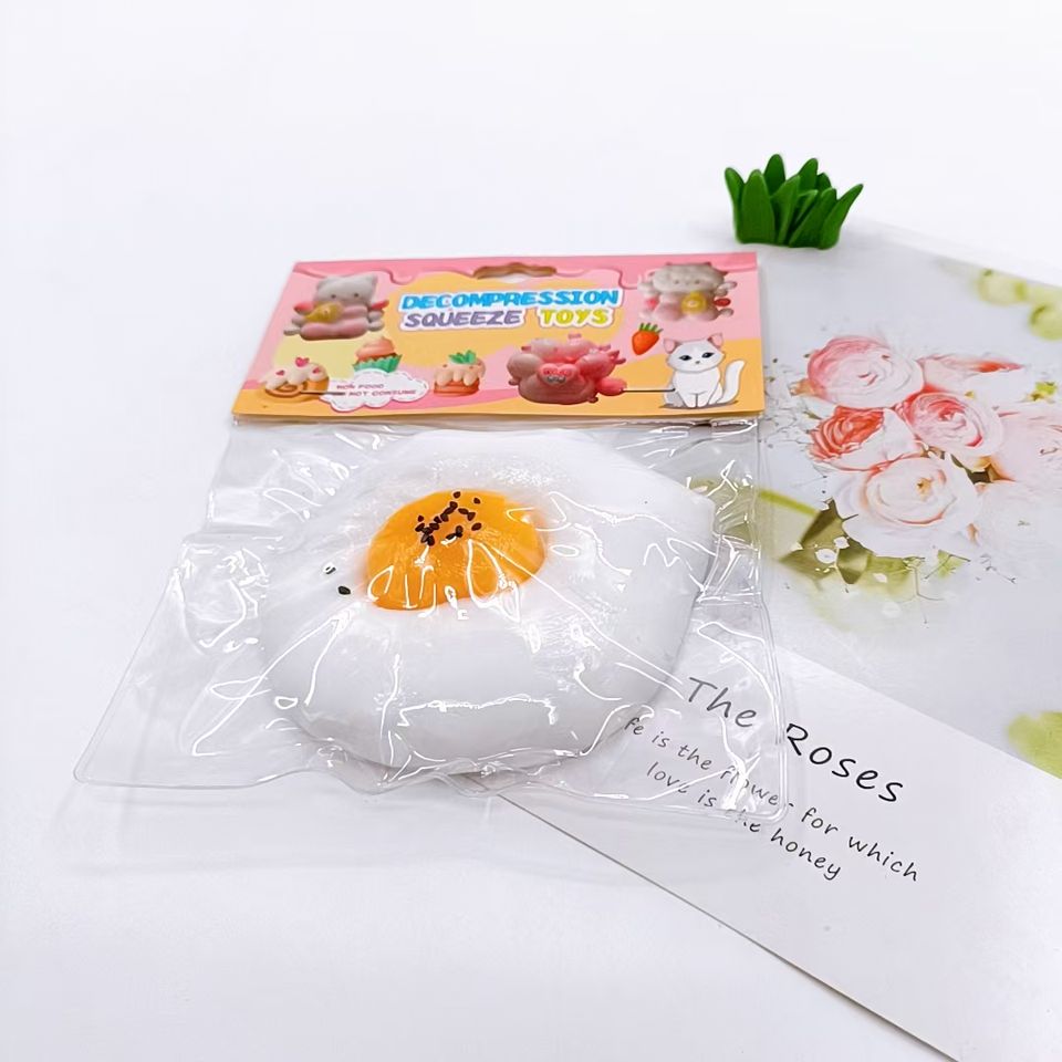 ของเล่นโมจิรูปไข่ดาวทอดจำลอง ทำมือ น่ารัก บีบคลายเครียด ของเล่นบีบเด้งดึ๋ง สร้างสรรค์