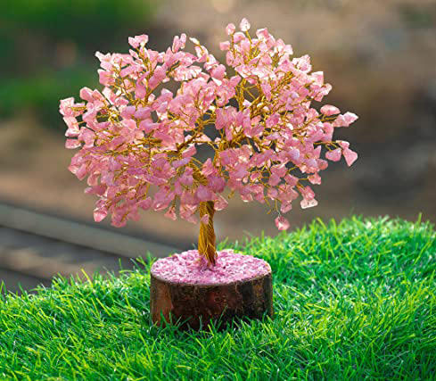 ต้นอาเกตประดับลูกปัด500ควอตซ์พลอยพร้อมฐานไม้