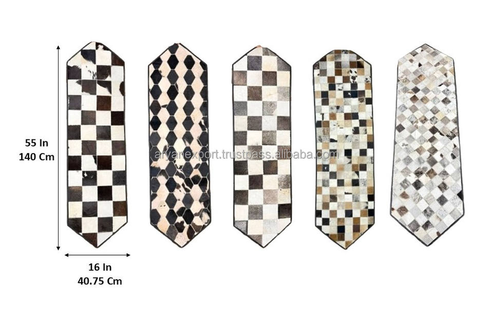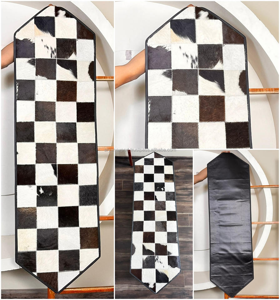 ผ้ารองโต๊ะหนังวัวแท้ทำมือลายตารางหมากรุกสีดำขาวสไตล์ตะวันตกสำหรับตกแต่งบ้าน