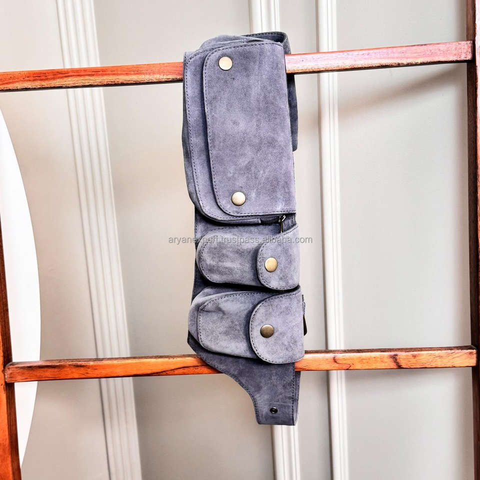กระเป๋าคาดสะโพกหนังนิ่มหนังแท้มีหลายกระเป๋าพร้อมสายรัดปรับได้กระเป๋าคาดเอวยูทิลิตี้สไตล์ตะวันตกสำหรับทั้งชายและหญิง