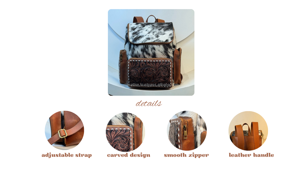 Hand Tooled Cowhide Leather Diaper Bag Backpack