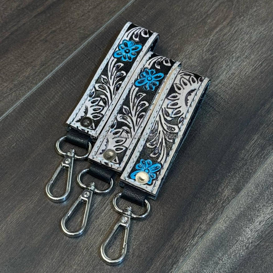 พวงกุญแจหนังวัวแท้ลายดอกไม้ทำด้วยมือแบบใหม่พวงกุญแจหนังวัวแท้พวงกุญแจน่ารักสำหรับผู้หญิง