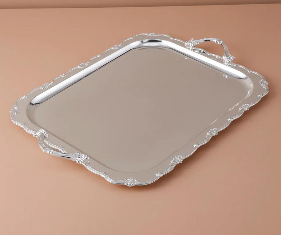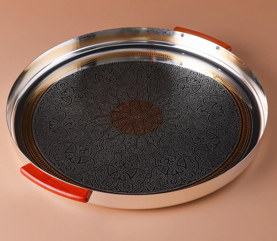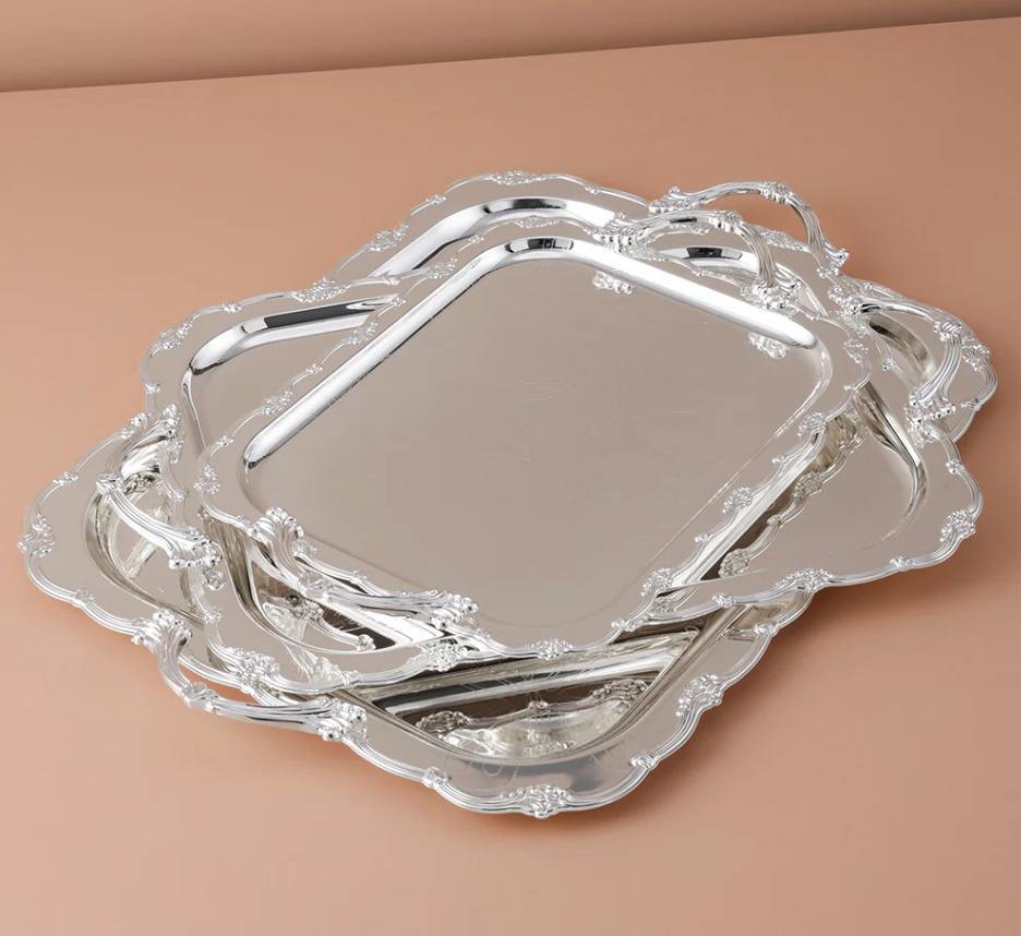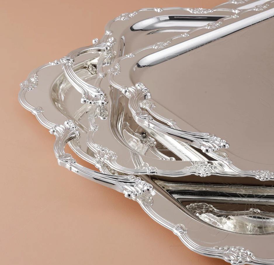 ชุดถาดถาดสี่เหลี่ยมชุบนิกเกิลคุณภาพสูงใหม่ทำด้วยมือจานเสิร์ฟกาแฟ4ชิ้นและของตกแต่งบ้านสำหรับโรงแรมร้านอาหารและใช้ในบ้าน
