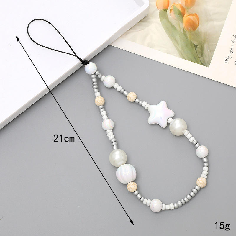 สายคล้องโทรศัพท์มือถือแบบใหม่ ทำด้วยมือ ประดับลูกปัดหลากหลายแบบ ดีไซน์สร้างสรรค์ ใช้งานได้หลากหลาย ตกแต่งด้วยไข่มุก รูปดาวห้าแฉก สายคล้องโทรศัพท์มือถือรูปดาวห้าแฉก