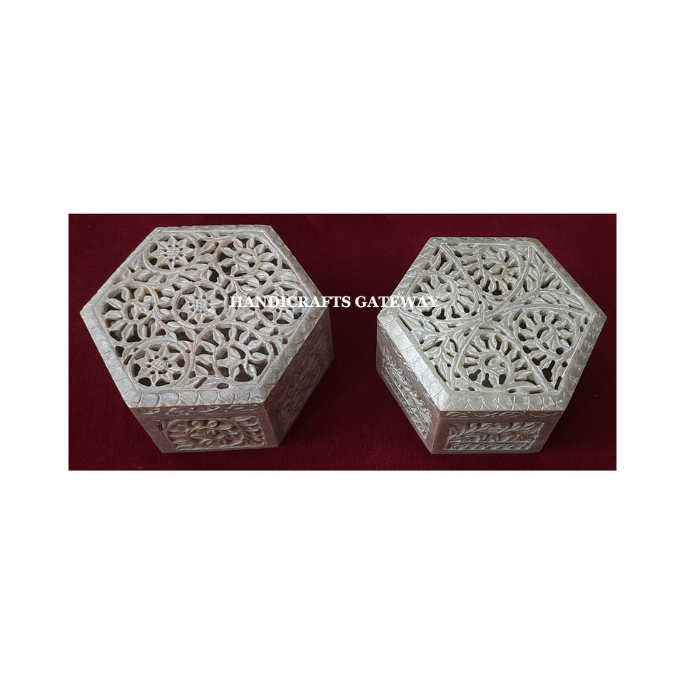 ใหม่กล่องเครื่องประดับสำหรับแกะสลักหินสบู่ธรรมชาติทำด้วยมือรูปทรงหกเหลี่ยมดีไซน์ดอกไม้ใช้สำหรับงานแต่งงานเป็นของขวัญ