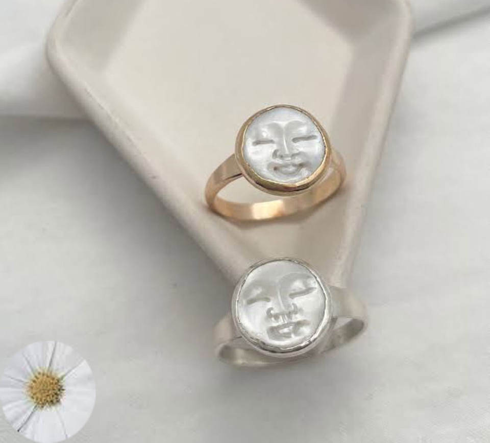 จี้พลอยมูนสโตนสีรุ้งชุบสีทองสเตอริงทำด้วยมือใหม่ทรงกลมสลักลายใบหน้าดวงจันทร์ดีไซน์เพื่อการรักษาที่หรูหรา