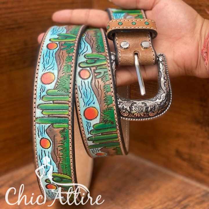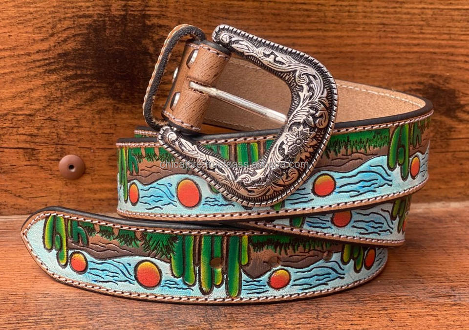 ชื่อผลิตภัณฑ์:เข็มขัดหนังสไตล์ตะวันตกพิมพ์ลายกระบองเพชรด้วยมือ
