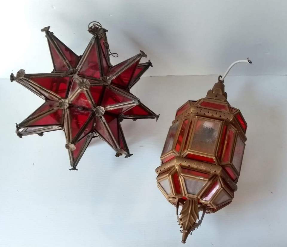 โคมไฟแขวนเพดานรูปดาวโมราเวียนแบบวินเทจทำมือใหม่ พร้อมแผงกระจกสีแดงทับทิม ตกแต่งบ้านช่วงคริสต์มาส ปรับขนาดได้ตามต้องการ