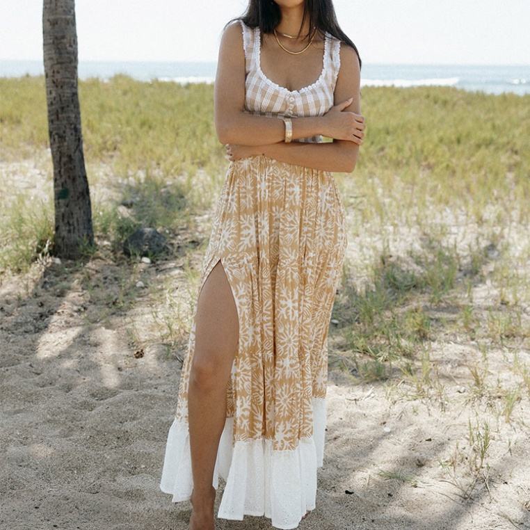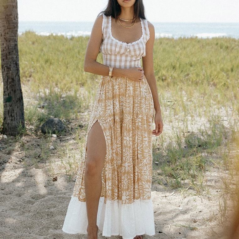 เสื้อกล้ามลายสก็อตฮาวายแบบใหม่ แต่งระบายด้านหลัง ไม่มีสาย ติดกระดุม สั่งตัดได้ ผ้าเรยอน 100% เนื้อนุ่ม