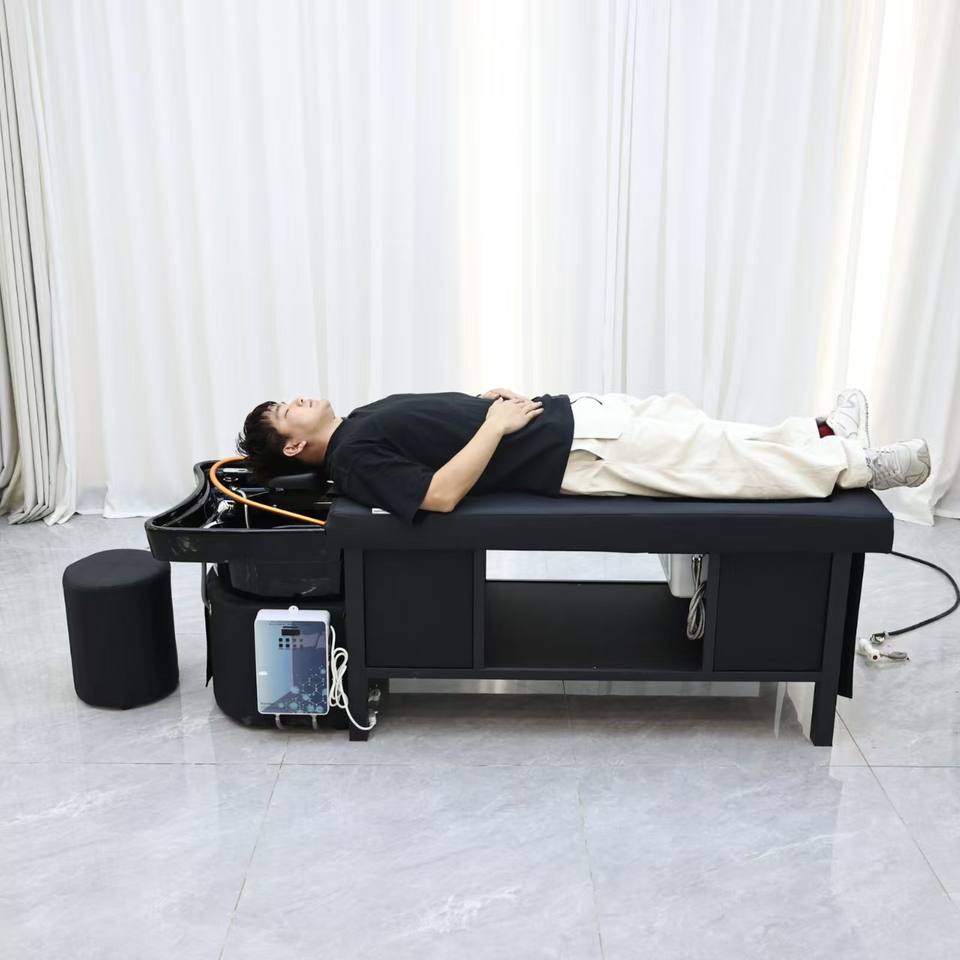 เตียงสระผมพร้อมอ่างสระผมแยกส่วน ระบบน้ำหมุนเวียน สำหรับร้านทำผม นวดผมแบบไทย