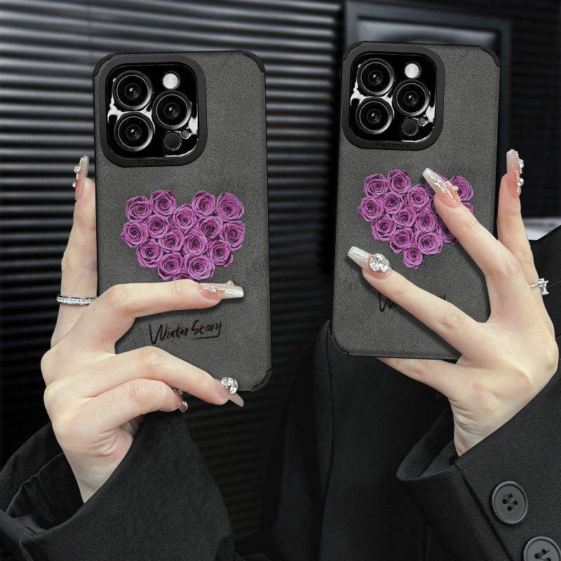 เคสโทรศัพท์ New Heart Rose สำหรับ iPhone 17 Pro เคสหนังกลับ New 15 สำหรับ iPhone 16 Pro Max ป้องกันการกระแทก พร้อมช่องใส่ของแบบแม่นยำ