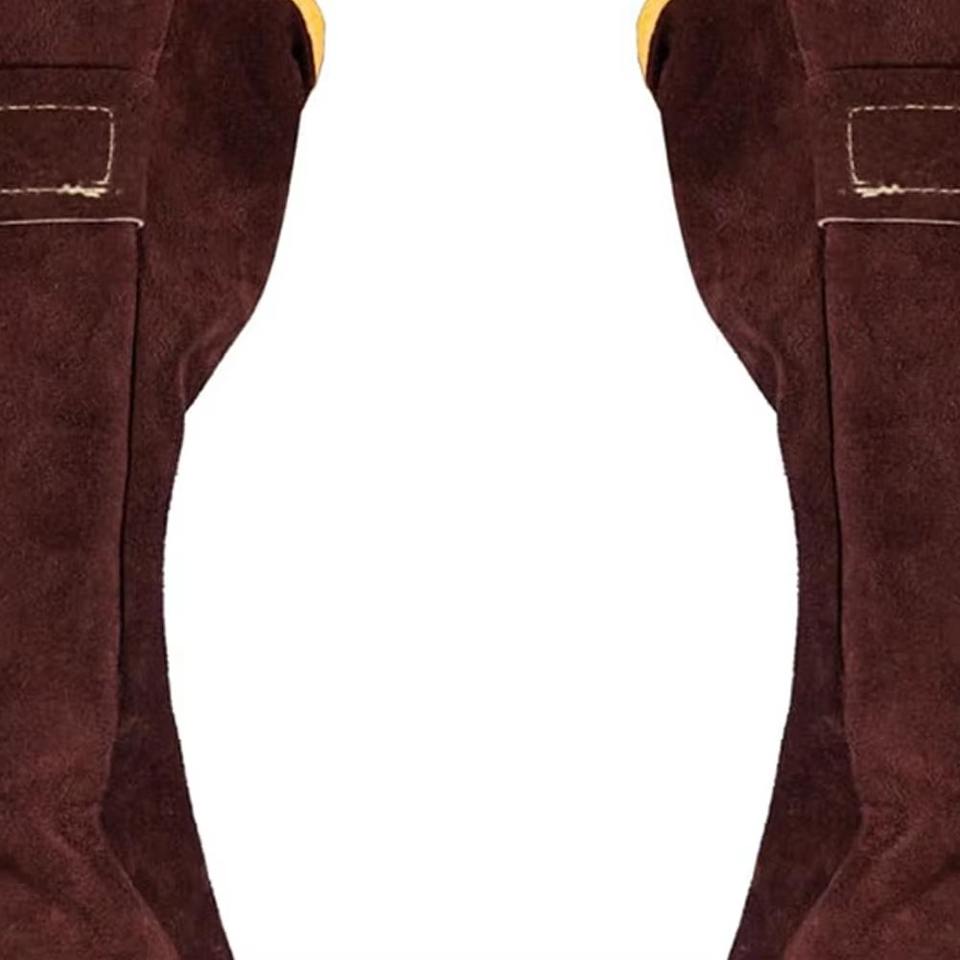 แขนเสื้อทำงานเชื่อมหนังป้องกันแขนด้วยเคฟลาร์เย็บและซับหนังทนความร้อนและเปลวไฟ