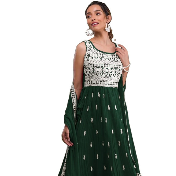 หมาจิ้งจอกตัวใหญ่แบบใหม่เย็บติดกันแบบกึ่งเย็บปักผ้าคอตตอนลายลูกไม้สำหรับผู้หญิงอินเดียปากีสถาน