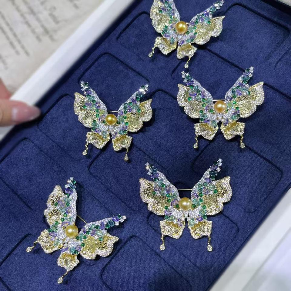 เข็มกลัดรูปผีเสื้อประดับมุกน้ำเค็มนาหยางสีทอง 8-9 มม. คุณภาพสูง ลายตัวเลข จากนิวเฮฟวี่อินดัสทรี