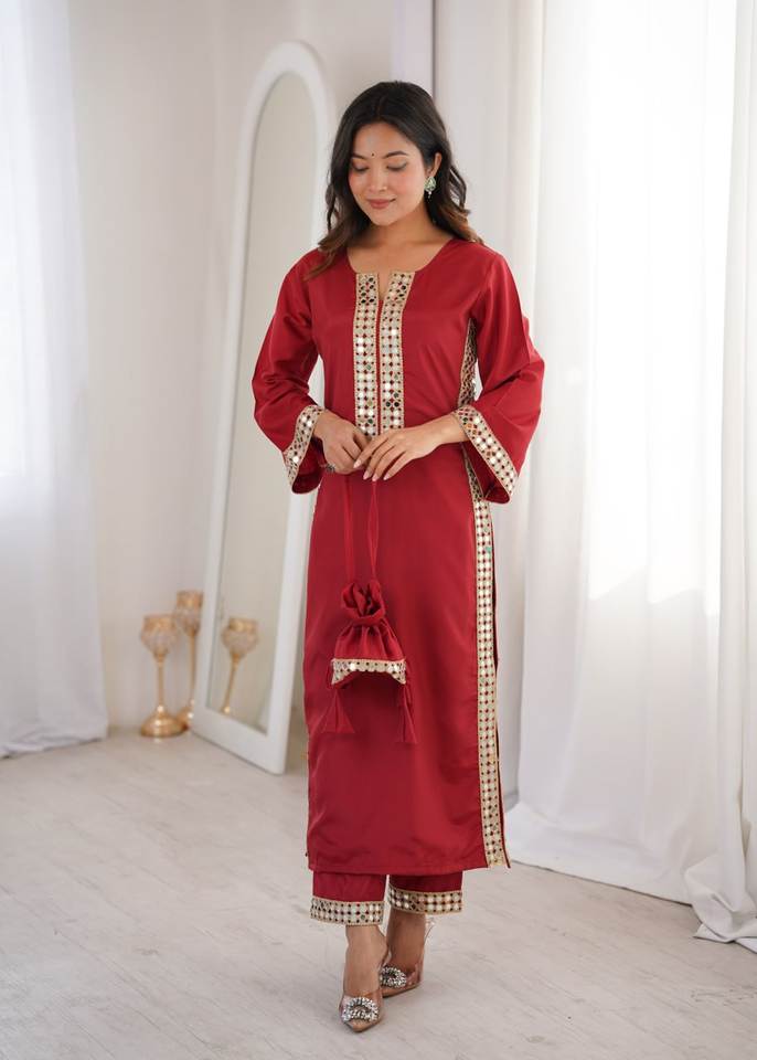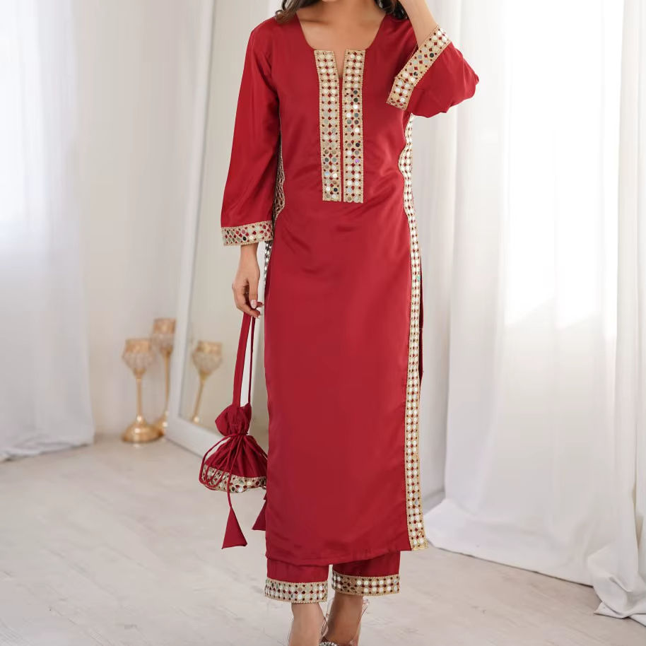 ชุดคุर्ติผ้าเครปเนื้อหนาแบบใหม่ ตกแต่งลายกระจก งานปัก งานปักเลื่อม ยืดได้ ใส่ได้ทุกฤดู สำหรับผู้หญิง พร้อมกางเกงบาตวา
