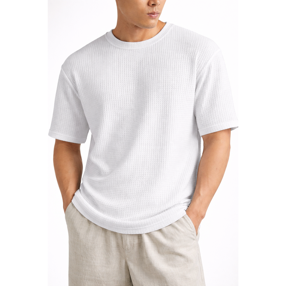 เสื้อยืดโอเวอร์ไซส์ทรงสตรีทแวร์ผ้าวาฟเฟิลนิต หนัก 240 กรัม รุ่นใหม่ สำหรับผู้ชายและผู้หญิง แบบเรียบๆ ปรับแต่งได้