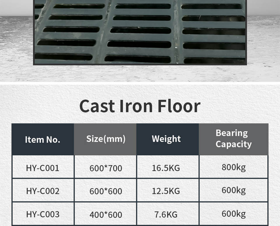 พื้นเหล็กหล่อรับน้ำหนักได้มากสำหรับฟาร์มสุกรและแม่สุกร ยี่ห้อ New Hengyin สีดำ ขนาด 600*600 มม./600*700 มม. รับประกัน 1 ปี