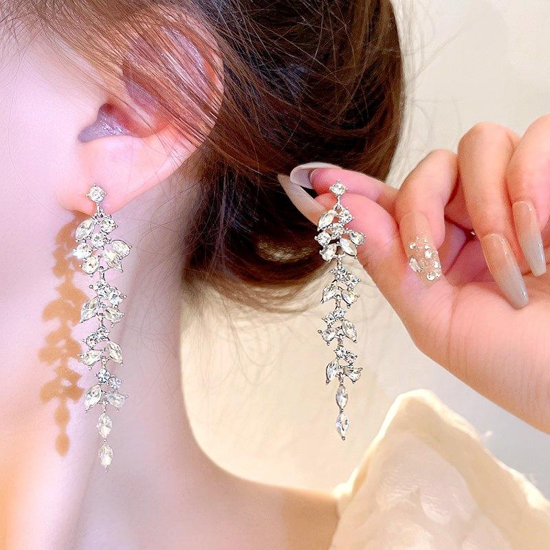 ต่างหูทรงปีกเรขาคณิตสุดหรู ดีไซน์ทันสมัย ประดับมรกตและพู่ห้อย วัสดุโลหะผสม ระยิบระยับ โดดเด่นสะดุดตา เครื่องประดับสำหรับผู้หญิง