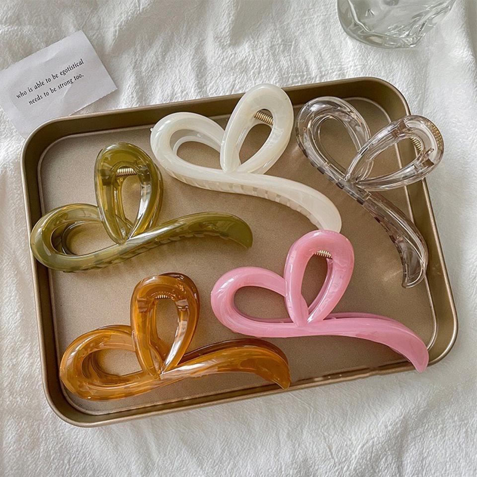 กิ๊บติดผมพลาสติกคุณภาพสูง ดีไซน์รูปหัวใจ สำหรับผู้หญิง เครื่องประดับผมสุดหรู ดีไซน์ทรงกรงเล็บฉลาม สำหรับมัดผมทรงบัน