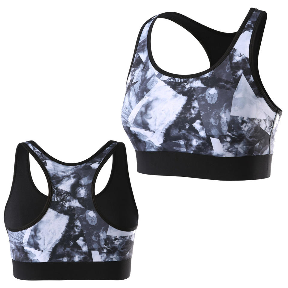 เสื้อชั้นในกีฬาโยคะผู้หญิงผ้าสแปนเด็กซ์ไร้รอยต่อพิมพ์ลายแบบซับลิเมชั่นคุณภาพสูง ระบายอากาศได้ดี เหมาะสำหรับออกกำลังกาย ฟิตเนส และเล่นกีฬา