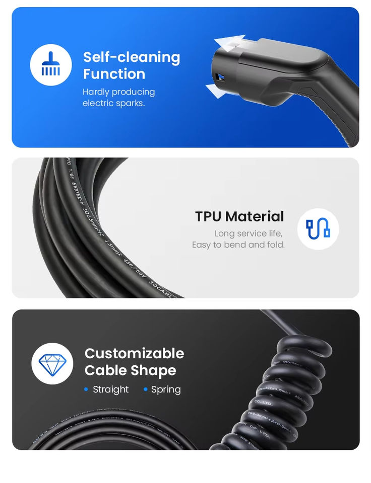 สายชาร์จรถยนต์ไฟฟ้า3เฟส Type2 gbt 22kW 32A ได้รับการรับรอง TPU CE Daoyu โรงแรมฟลีตส์