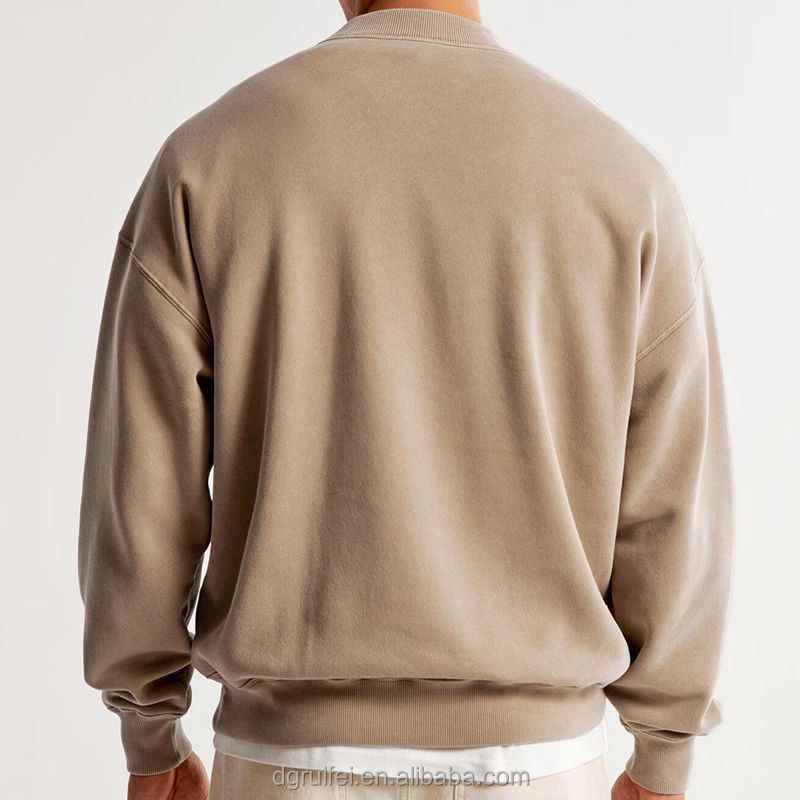 เสื้อสเวตเตอร์โอเวอร์ไซส์สำหรับผู้ชายเสื้อครอปเทอร์รี่สไตล์วินเทจแบบไม่มีลายสำหรับ2026