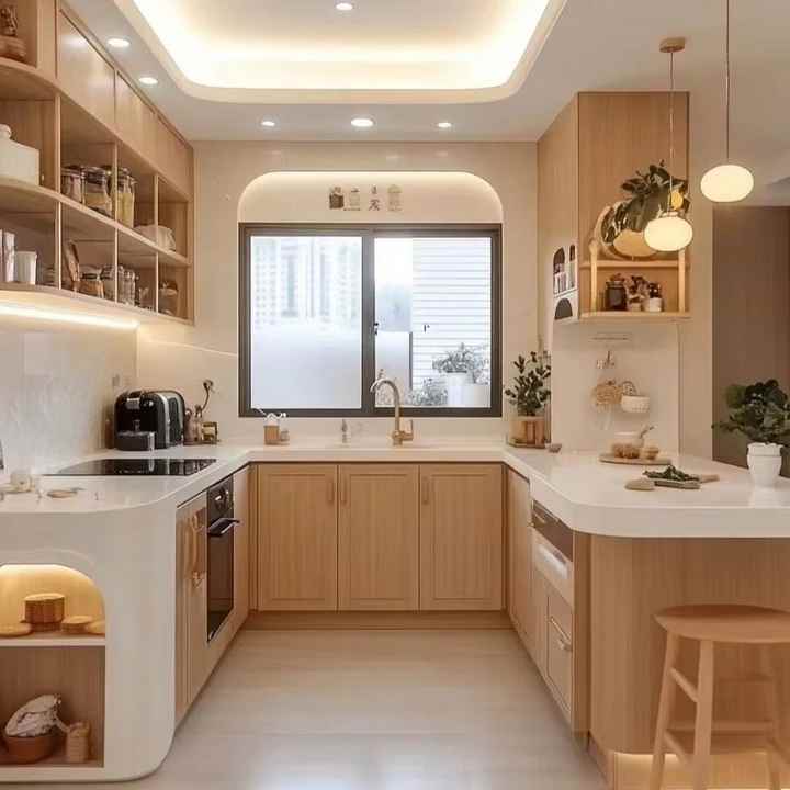 ตู้ครัวไม้ธรรมชาติคุณภาพสูงหรูหราทันสมัยทันสมัยหรูหราแยกส่วนสำหรับในร่ม