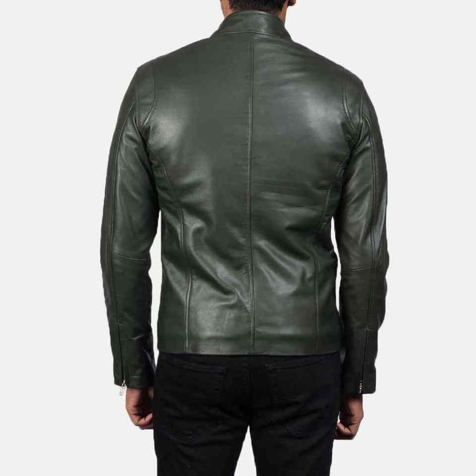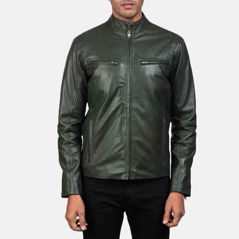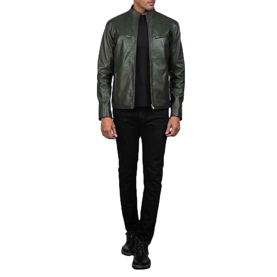 แจ็คเก็ตหนังแท้คุณภาพสูงแบบใหม่ ปกตั้ง กันน้ำ อุ่น สำหรับผู้ชาย สีเขียว แฟชั่นฤดูหนาว