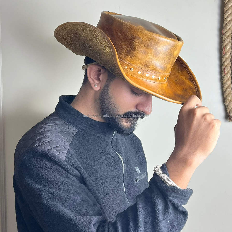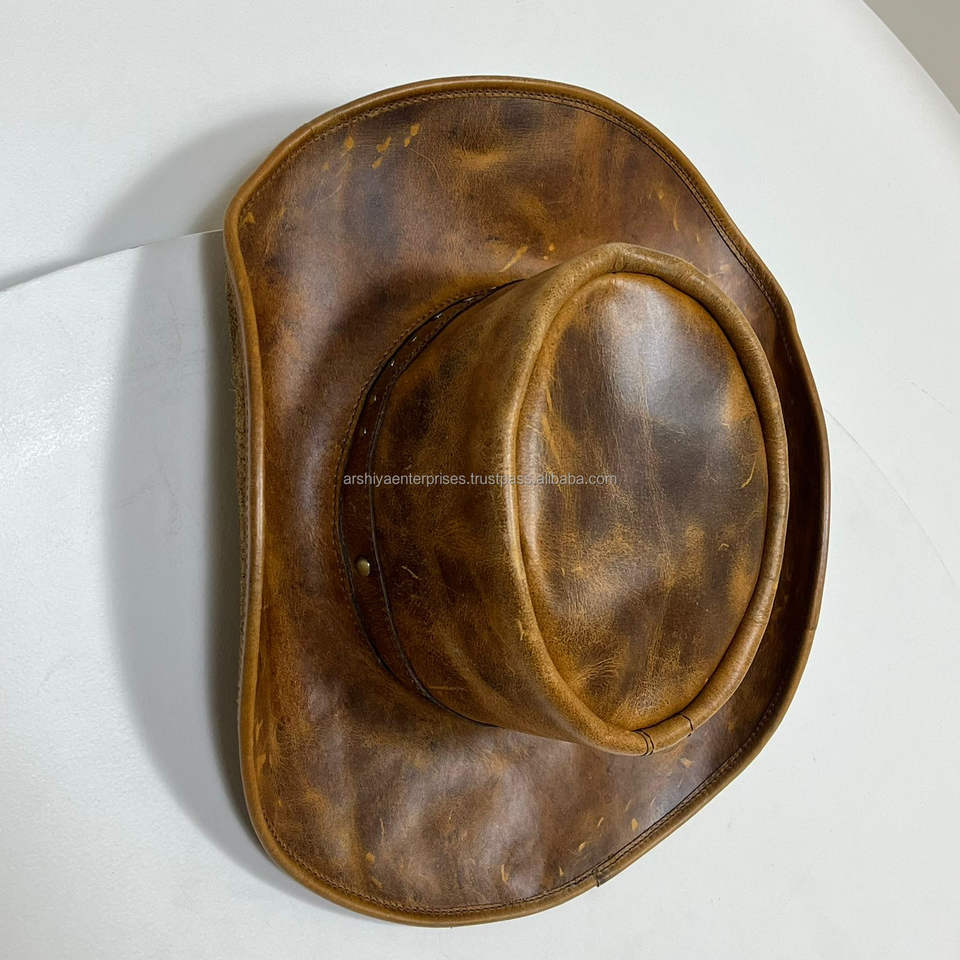 หมวกคาวบอยหนังแท้คุณภาพสูงแบบใหม่ สไตล์ตะวันตก ทรงบุชแฮท ปีกกว้าง ปรับรูปทรงได้ ทนทาน ป้องกันแสงแดด