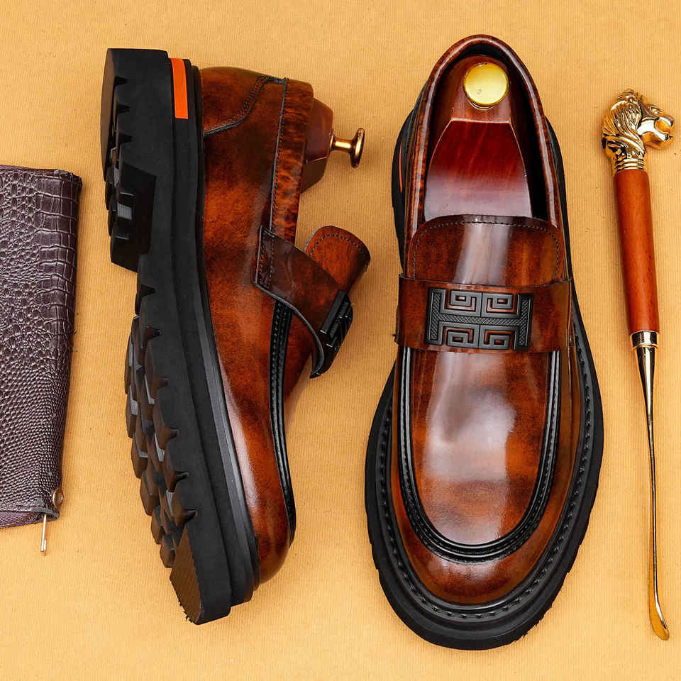 รองเท้าหนังแท้คุณภาพสูงสำหรับผู้ชาย พื้นหนา หนังวัว แบบอ็อกซ์ฟอร์ด น้ำหนักเบา กันลื่น เหมาะสำหรับงานแต่งงาน ผิวเรียบ สไตล์ลำลอง