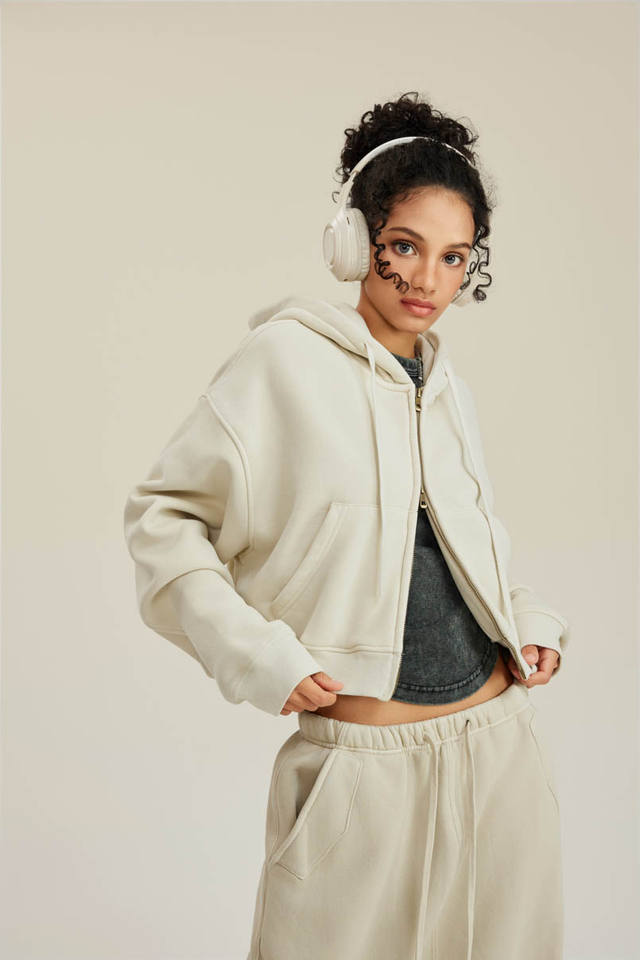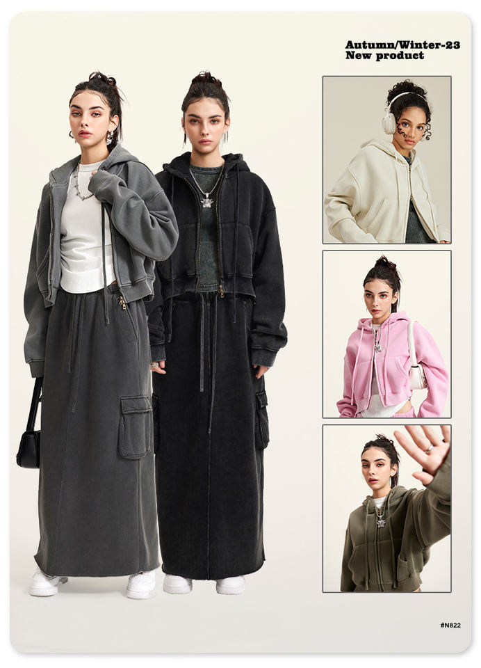เสื้อฮู้ดผู้หญิงแบบครอปพิมพ์ลาย สไตล์สตรีทแวร์ ซิปหน้า ผ้าหนา น้ำหนักมาก ทรงโอเวอร์ไซส์ คุณภาพสูง ดีไซน์ใหม่