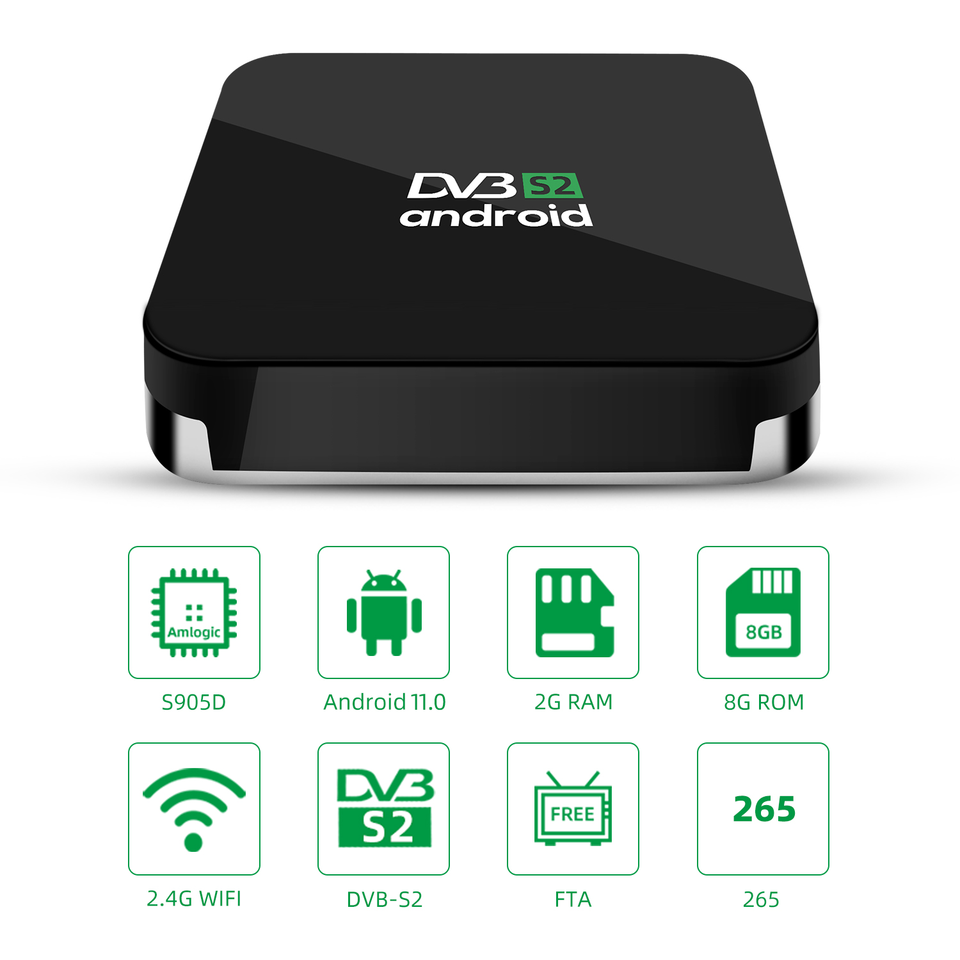 กล่องรับสัญญาณทีวีไฮบริดใหม่ DVB-S2แอนดรอยด์ Wi-Fi คู่ Full HD 1080P Quad Core H.265 Amlogic S905