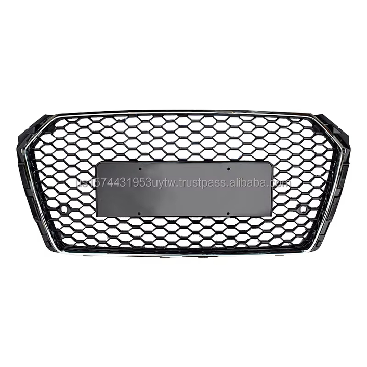 กระจังหน้าทรง RS4 แบบรังผึ้งคุณภาพสูงใหม่ วัสดุ ABS ขอบโครเมียม ตาข่ายสีดำ สำหรับ Audi A4 S4 B9 ปี 2017-2019