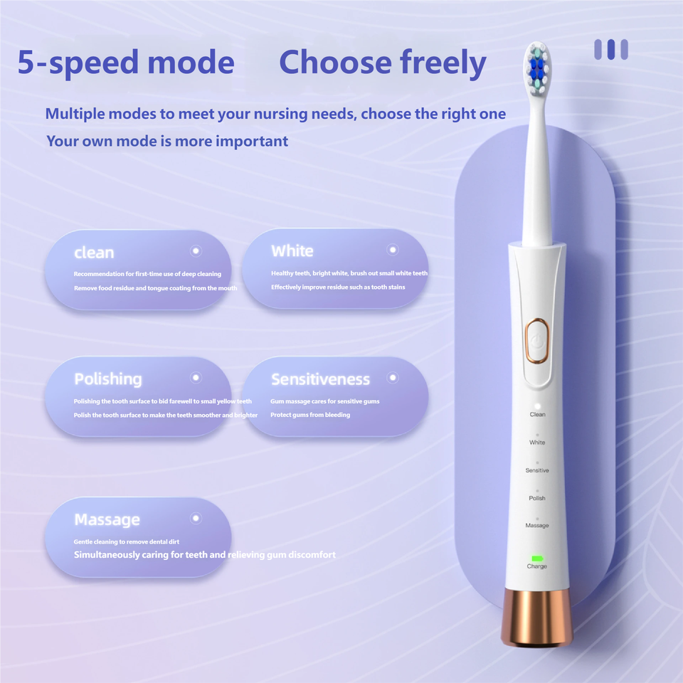 แปรงสีฟันไฟฟ้ากันน้ำสำหรับผู้ใหญ่5สปีดผมนุ่มอัจฉริยะชาร์จด้วย USB สำหรับเดินทาง