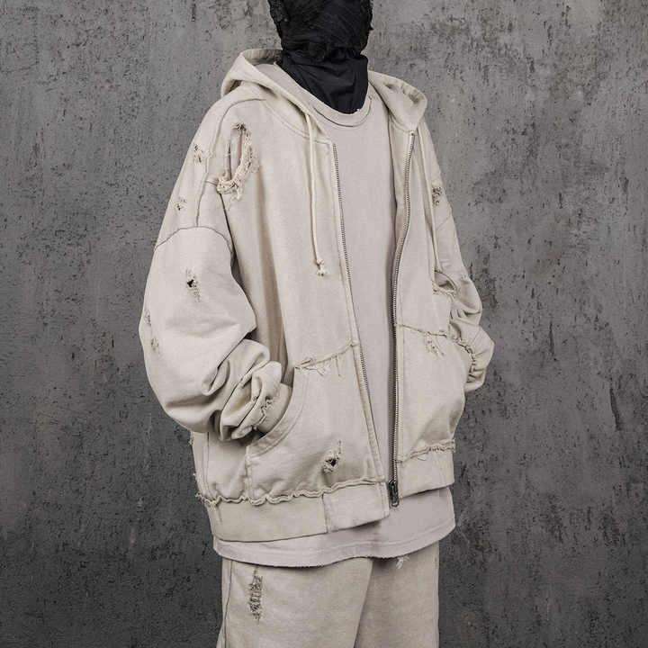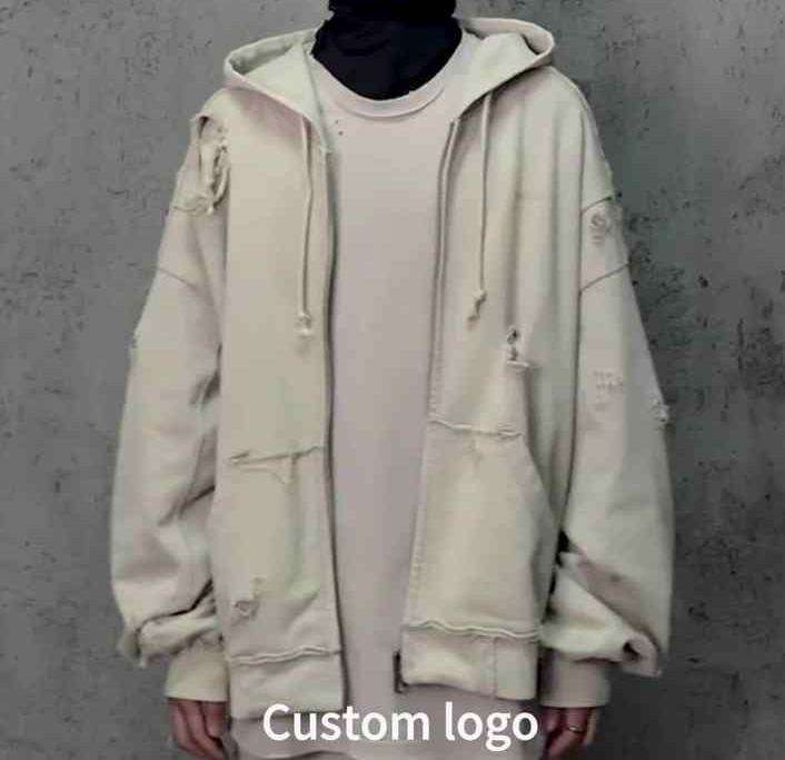ชุดวอร์มฤดูหนาวผ้าฟลีซคุณภาพสูงแบบใหม่ ทรงโอเวอร์ไซส์ ลุคดิสเทรส เป็นมิตรต่อสิ่งแวดล้อม พร้อมเชือกผูกเอว ผลิตจากไนลอน/คอตตอน สำหรับผู้ชาย