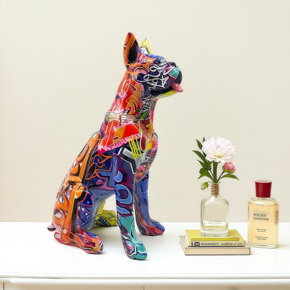 งานประดับตกแต่งเรซิ่นอีพ็อกซี่รูปสุนัขโดเบอร์แมนลายกราฟฟิตี ดีไซน์ใหม่ สำหรับตกแต่งบ้าน ห้องนั่งเล่น ตู้วางทีวี/ตู้ไวน์