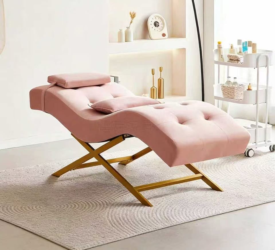 เตียงเสริมความงามรูปตัว S ระดับไฮเอนด์ใหม่ สำหรับร้านเสริมสวย เตียงปักลายสำหรับทำเล็บ ล้างหน้า และทำความสะอาดหู
