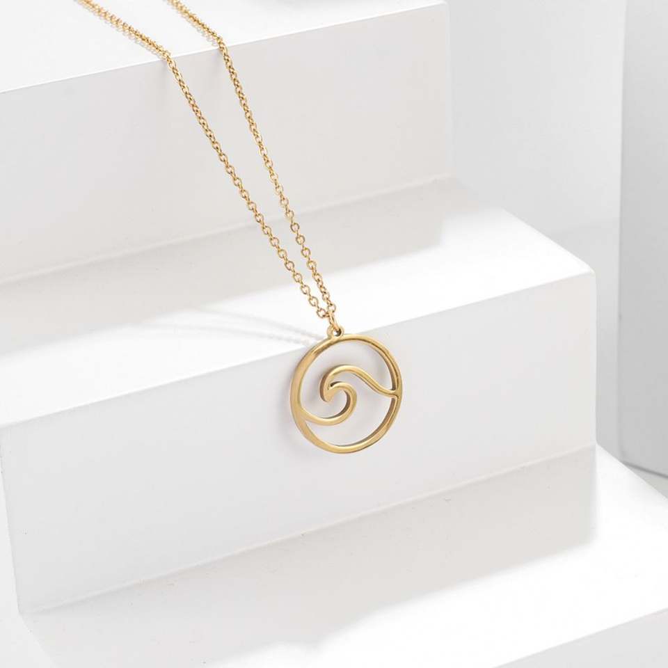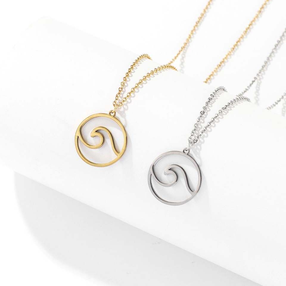สร้อยคอรูปคลื่นสแตนเลสเกรดสูงใหม่ลายคลื่นชายหาดแฟชั่นเฉพาะกลุ่มสร้อยคอสแตนเลส