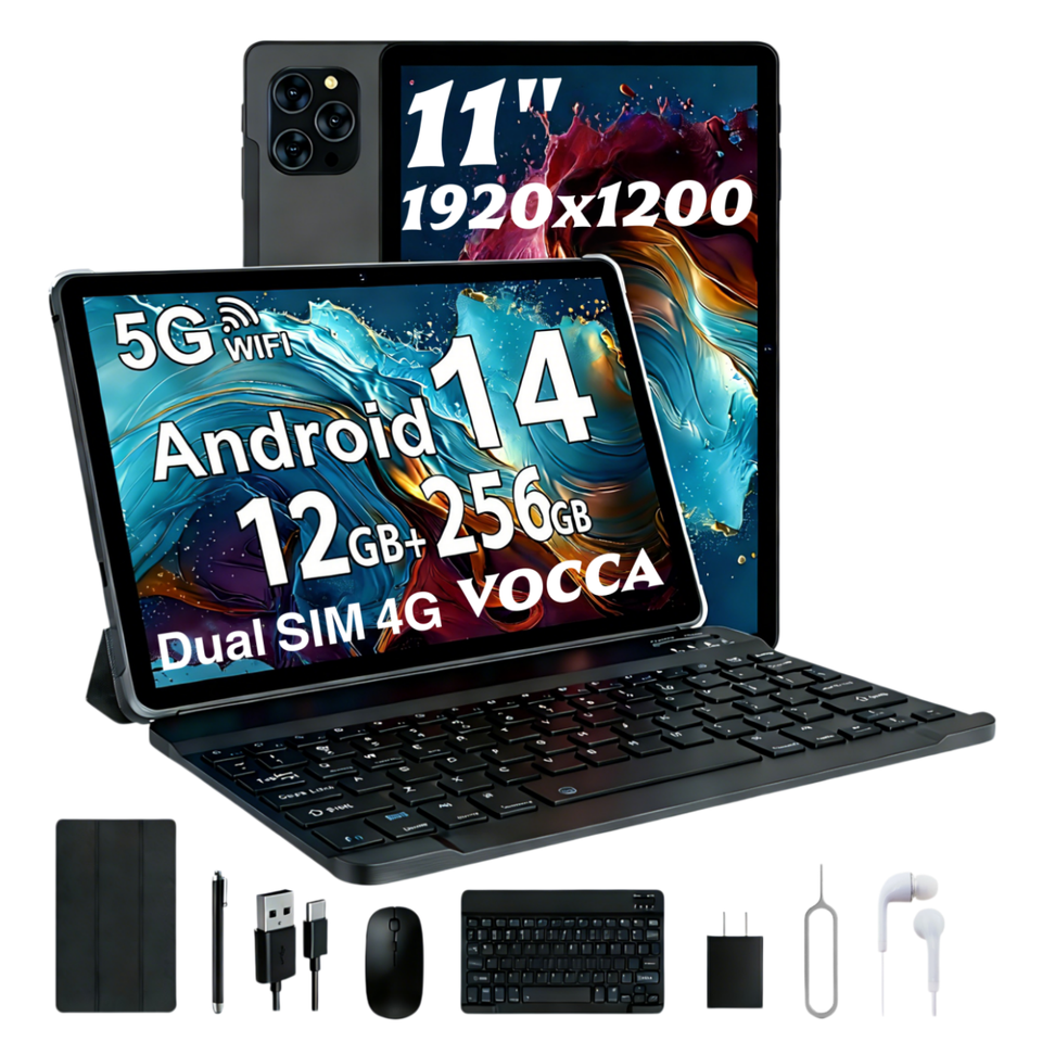 แท็บเล็ตหน้าจอใหญ่ 11 นิ้ว ความละเอียดสูง คุณภาพใหม่ ระบบสัมผัสแบบ Capacitive ชิปประมวลผล MTK Android 14 Octa Core รองรับซิมคู่ หน่วยความจำ 14GB+256GB