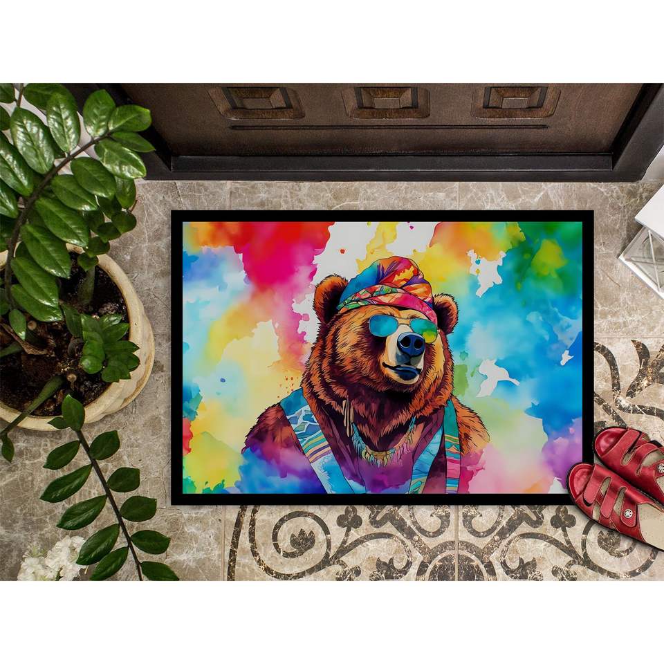 New Hippie Animal Grizzly Bear Doormat Non-Slip Indoor Outdoor 18H X 27W Low Pile Rug for Entryway Washable Front Door Mat