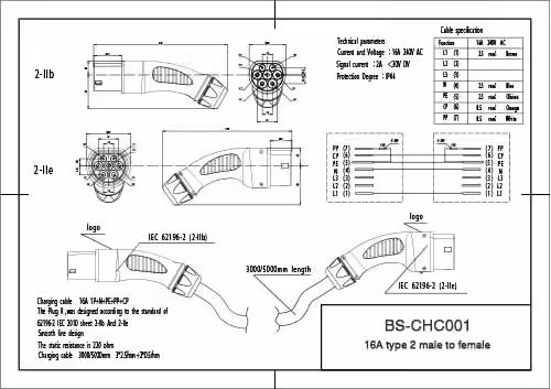 สายชาร์จรถยนต์ไฟฟ้าแบบพกพา New Home EV 16A 3.6kW 230V 1 เฟส Type 2 EVSE ชาย-หญิง 10 เมตร พร้อมใช้งานกับ Wallbox ยี่ห้อ Daoyu