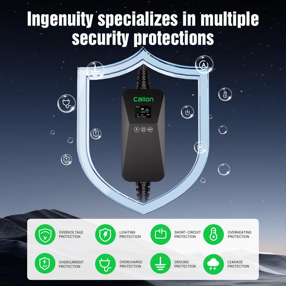 ที่ชาร์จรถยนต์ไฟฟ้าแบบพกพาสำหรับใช้ในบ้าน240V 3.5KW 16A พร้อม IP54กันน้ำ/ETL/FCC