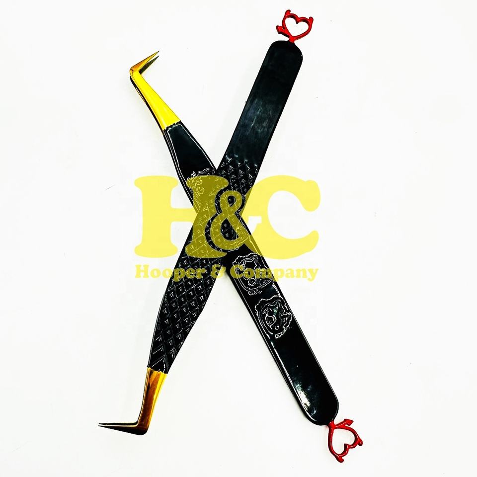 New Hooper Company HAC-ET-2581 Eyelash Extension Tweezers Stainless Steel Heart Diamond Dust Fiber Tip Sharp Tip 90 Degree