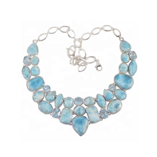 ออกแบบใหม่ร้อนที่เรียบง่าย 925 เงินสเตอร์ลิง Larimar สร้อยคออัญมณีหลายสําหรับผู้หญิงแฟชั่นเครื่องประดับ