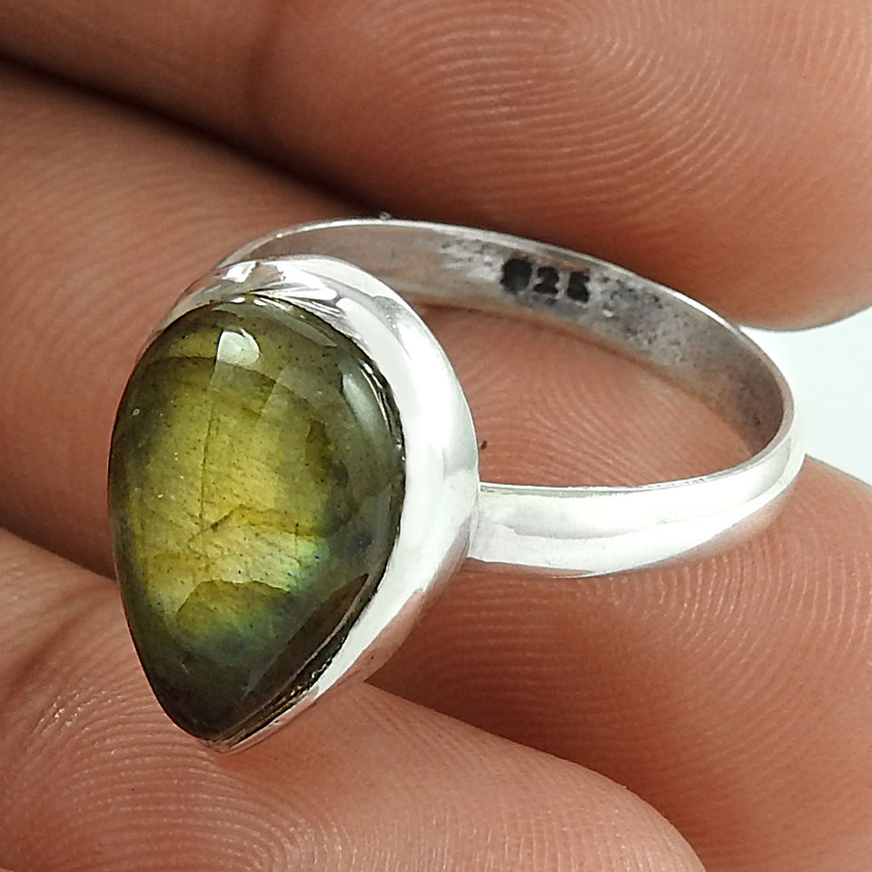 แหวนพลอยลาบราดอไรต์ธรรมชาติสีทองร้อนแรง925เครื่องประดับแฟชั่นเงินสเตอร์ลิงเครื่องประดับมาใหม่ผู้ผลิตของขวัญ