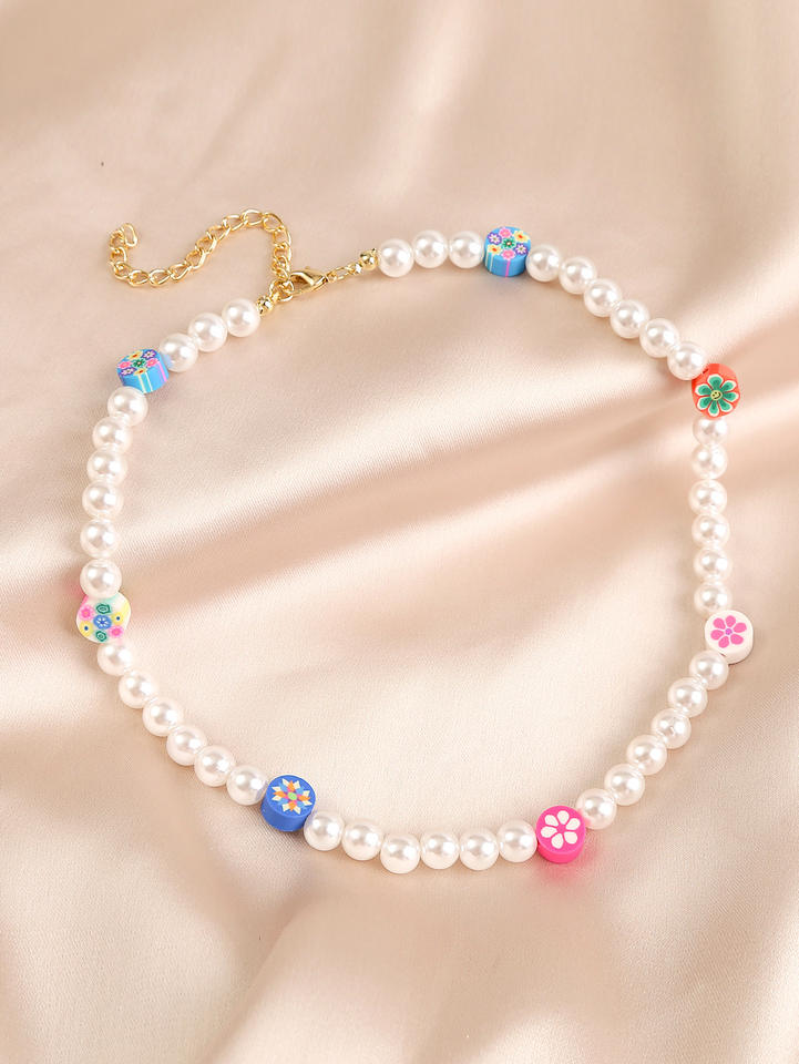 ลดกระหน่ำดอกไม้สีสันสดใสเครื่องประดับลูกปัดดินเหนียวแฟชั่นน่ารักสร้อยคอลูกปัดมุก